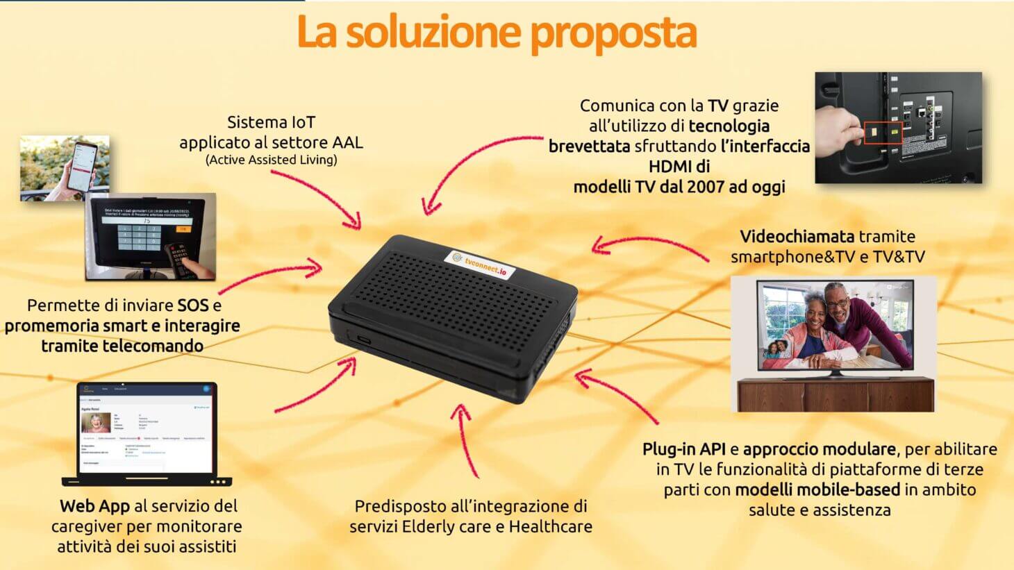 L’assistito, anche se anziano non digitale, utilizza solo il suo telecomando TV, strumento a lui noto, e non necessita di formazione a nuove tecnologie.